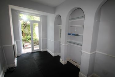 Glazed rear hall leading to outside w.c.
