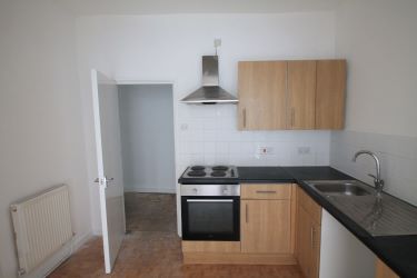 Lounge/Kitchen - Part laminate/part tiled floor. Bay windows to front and side, with part sea view. Radiator. Fitted wall and base units to kitchen area incorporating integral electric oven and hob, extractor hood and single drainer sink.