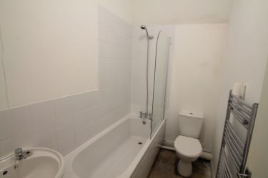 Bathroom - Bath with shower over. WC, Wash hand basin, Heated Towel Rail.