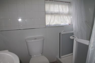 Bathroom - Window to rear. Walk in shower, wc, wash hand basin. electric storage heater.