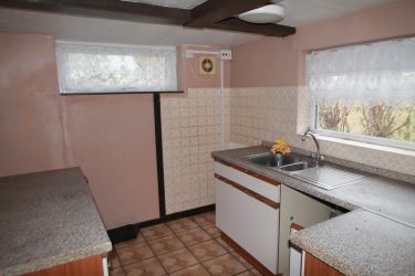 Kitchen - 14'7'' max x 7'1''. Window to side and rear. Wall and base units. Single drainer sink.