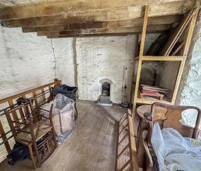 A small fenced courtyard area leads to the front door. The ground floor is 4.16m x 3.43m and has a superb arched window to the front, a glazed door to the side and second window, quarry tiled floor, stone open fireplace, beamed ceiling and stairs leading to the first floor. The second floor is 4.16m x 3.43m having a window to the front and the side, floorboards, beamed ceiling, open fireplace and a large loft hatch giving access to the second floor. We believe it would be possible to install a staircase to the second floor as it has enough head height to create further accommodation.