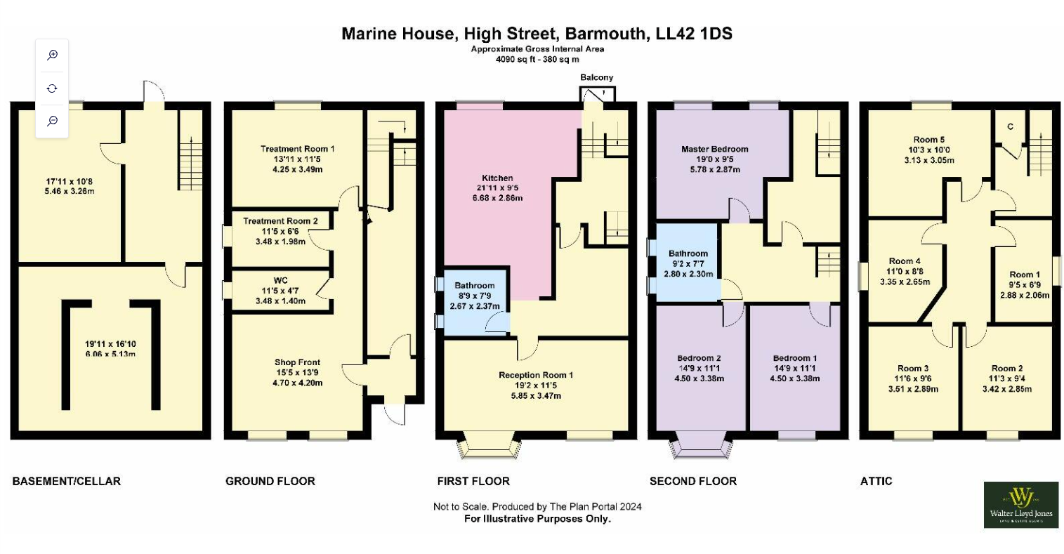 Marine House is a semi-detached property of stone construction under a slated roof, situated in a prominent location on the High Street in the popular seaside town of Barmouth.