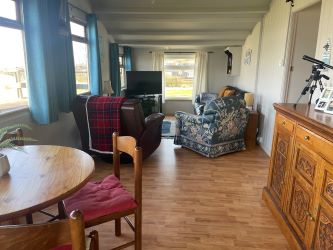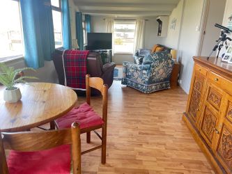 Living/Dining Room - 20'6'' x 9'7''. Having 3 front aspect windows to give outstanding views over Traeth Bychan Beach. Laminate flooring, wall mounted electric heater, part double glazed.