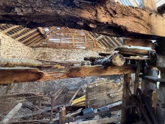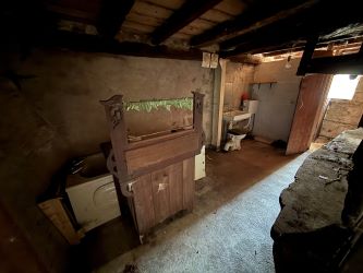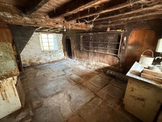 Adjoining Crux Building - To the front of the house there is a further adjoining building that has all the Crux timbers still in place. There is also a stone built shed and outside toilet that adjoins this part of the house.