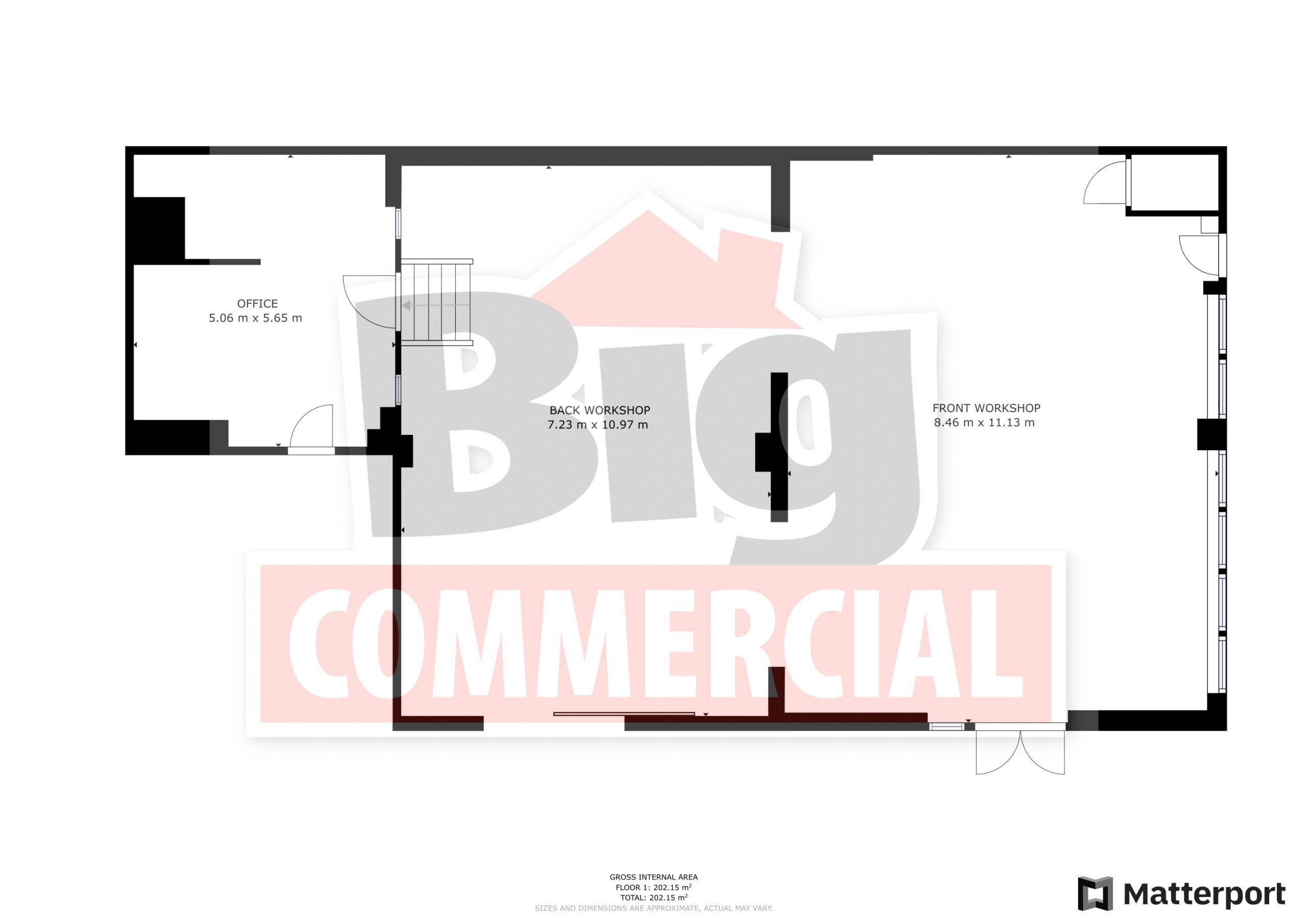 This unit offers two large workshops, a WC, an office and an abundance of external space. The external space can be accessed from the door in the office, or the French doors in the workshop. There is also vehicle access into the building via the external area.
