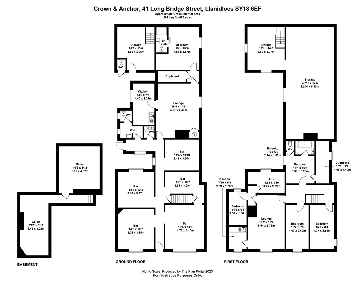 Charming historic public house dating from the 17th century and occupying an exceptionally good location In the centre of the historic market and tourist town of Llanidloes. The Grade II listed property has been in the same family for many generations and has a long history in the mid Wales area. On the Ground Floor there are five separate rooms, each with their own character, as well as WCs, a commercial kitchen and the owner accommodation. On the First Floor there are four/five bedrooms, a lounge, kitchenette, WC and bathroom.The extensive level garden at the rear is a huge bonus and is well remembered for offering regular live music events. There is also a stone and timber barn and detached garage at the rear of the property, accessed at the side of the public house.
