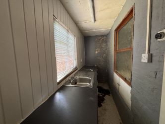 Kitchen (3.82 x 1.09m) Base unit with worktop over, sink and drainer, window to the rear.