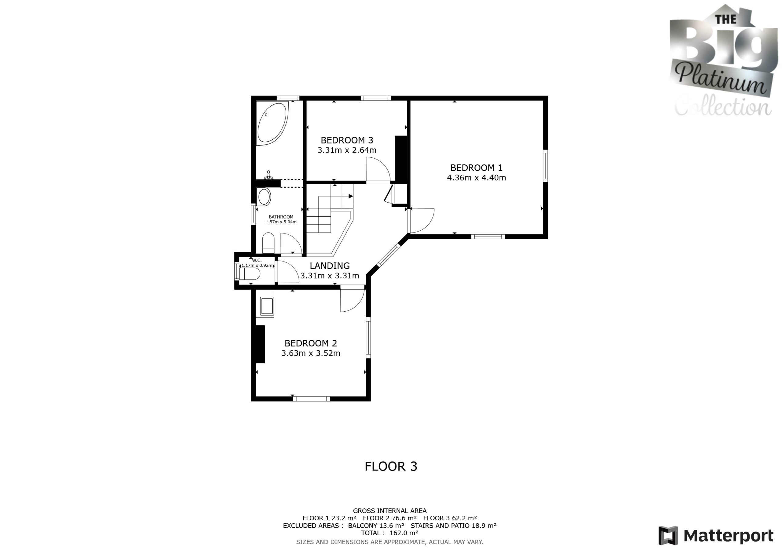 Bedroom 3: 3.31m X 2.64m