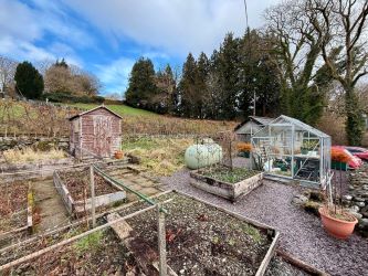 Externally, there is a pretty veranda to the front, framed by well established Wisteria. Opposite the house there is detached lawned garden with well-stocked borders, providing a plethora of colour. At the bottom of the garden there is a gateway with steps going down to the stream. To the side of the property there is a further garden area, with raised vegetable beds, greenhouse and off road parking for at least 2 vehicles. The former village public toilets (now closed) are located here and offers the potential to convert these, subject to the necessary planning permission.