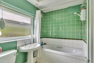 Bathroom - White suite of bath with Triton electric shower over, wc, wash hand basin, part tiled walls, UPVC double glazed window to front, cupboard housing hot water tank, ceiling hatch to loft space.
