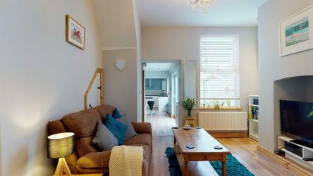 Lounge - 4.63m x 3.69m plus bay window. Bay window to front. Radiator. Mains smoke alarm and coving to ceiling with pendant light. Large opening to kitchen/diner.