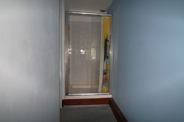 Shower Room - 15'2'' x 3'3''. Shower enclosure, wc, sink, vinyl flooring, window to rear