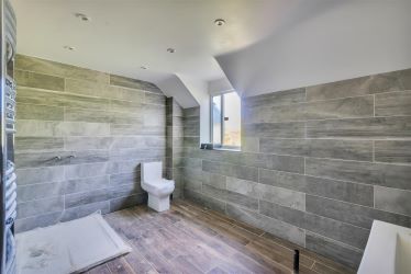 Shower Room - The part converted shower room has a window to the rear, tiled floor, spotlights.