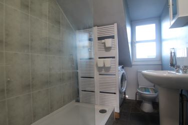 Bathroom - UPVC window to rear. Tiled floor. Shower unit, w.c and wash hand basin.