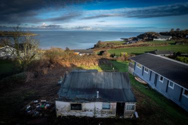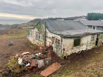 The existing chalet is built of timber walls under a sloping felt roof. It extends to 51.5 square metres or thereabouts internally. It is not in a habitable condition. The accommodation provides for a living room, kitchen, two bedrooms and a bathroom. It stands on an excellent plot with panoramic coastal views.