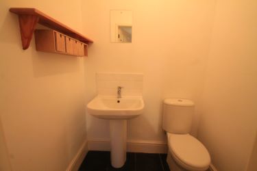 Fully tiled flooring. Benefitting from a low level WC and a pedestal wash hand basin with tiling to splashback area.