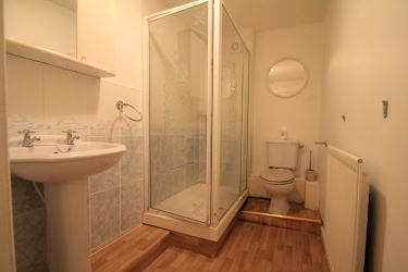 Partially tiled walls. Comprising a three-piece bathroom suite to include low level WC, pedestal wash hand basin and a walk-in shower cubicle with electric shower over. Radiator.
