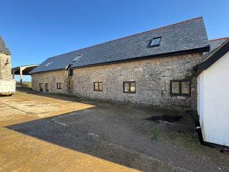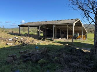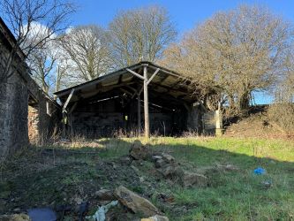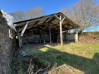 Stock Shed - PLEASE NOTE... The large concrete and portal frame stock shed to the northern side of the barn and land adjoining is included in the sale. It is a large versatile building ideal for converting into stables with yard, general storage ideal during construction as it could readily be enclosed to all sides.