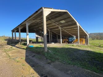 Stock Shed - PLEASE NOTE... The large concrete and portal frame stock shed to the northern side of the barn and land adjoining is included in the sale. It is a large versatile building ideal for converting into stables with yard, general storage ideal during construction as it could readily be enclosed to all sides.