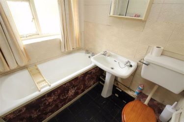 Fitted with a panelled bath, low level w.c., wash hand basin and a window to the rear.