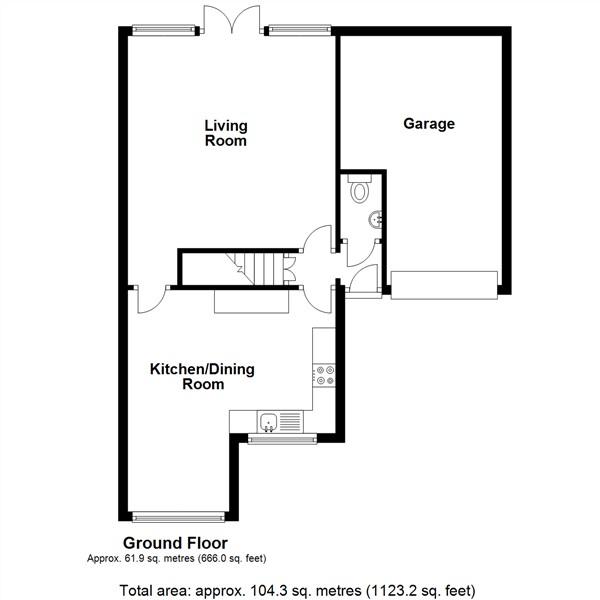 Kitchen Diner - two large double glazed front windows. Fitted kitchen comprising a range of base units with work surface over, stainless steel single bowl sink, drainer and matching mixer tap. Featuring an integrated fan-assisted oven with four-ring ring gas burner hob and extractor hood over, with further space and plumbing for a freestanding washing machine and tall fridge/freezer. Recessed ceiling lights, further twin ceiling lights in dining area, radiator and vinyl flooring.