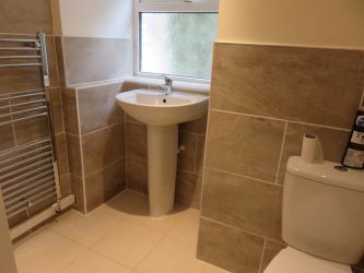 Half landing - Separate wc and wash hand basin. Fully tiled walls and UPVC double glazed window.