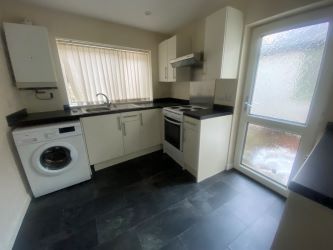 Kitchen/Diner 3.22m x 2.89m - A modern kitchen with high gloss fronted wall and base units with Beech effect work surfaces and tiled splashbacks. Stainless steel single drainer sink with mixer tap. Built in Lamona fridge, freezer, slimline dishwasher, cooker and hob with stainless steel canopy over. Laminate wood flooring, radiator and inset lighting to ceiling. Cupboard housing gas central heating boiler. UPVC side window and exit door to rear yard.